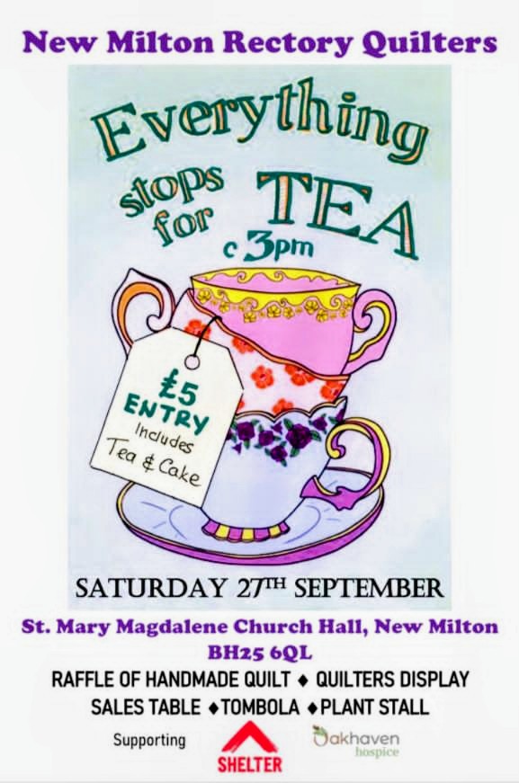 The Tea At Three this year will be in aid of Shelter and Oakhaven Hospice ...We hope you are able to come and support us in the usual way.
